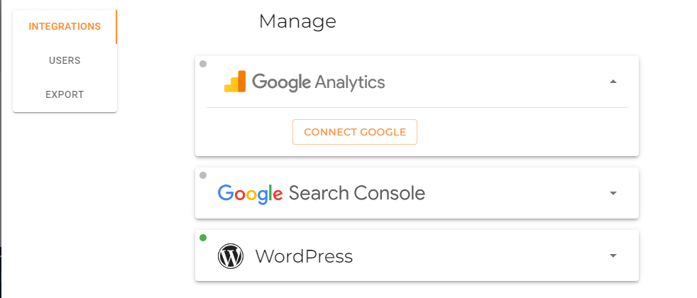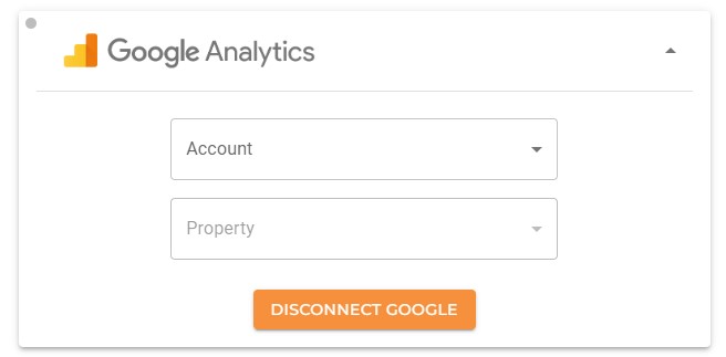 Expand the Google Analytics section and click the Connect Google button. Log in to the proper Google account via the pop-up.